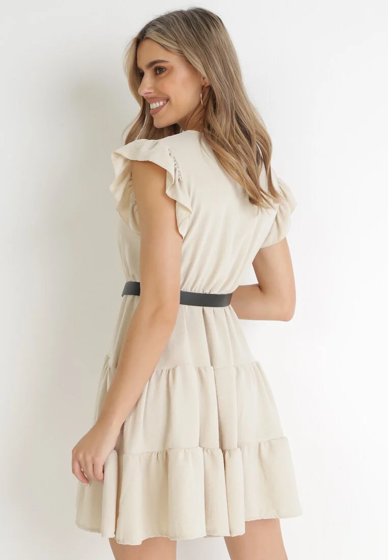 Sukienka z Gumką i Paskiem w Talii Ozdobiona Falbankami Deliga